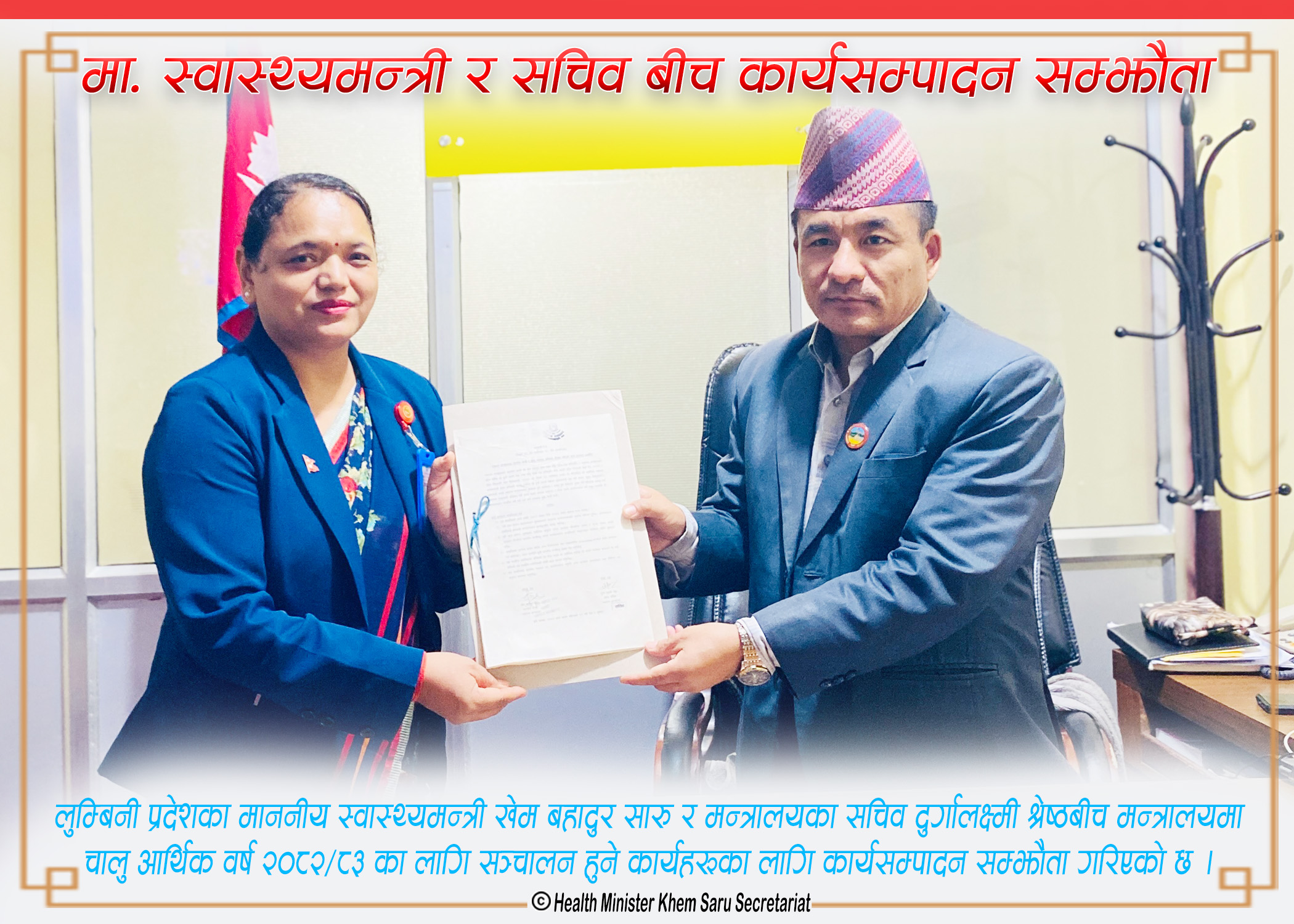 लुम्बिनीका स्वास्थ्यमन्त्री र सचिवबीच कार्यसम्पादन सम्झौता