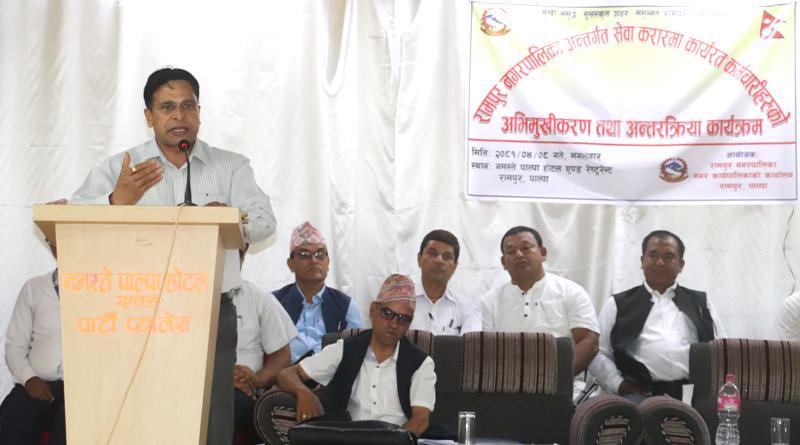 करारमा कार्यरत कर्मचारीलाई थप जिम्मेवार बनाइनुकासाथै उनीहरुको समस्या पहिचान गरी सम्बोधन गर्ने उद्देश्यले नगरपालिकाद्वारा अभिमुखीकरण तथा अन्तरक्रिया कार्यक्रम