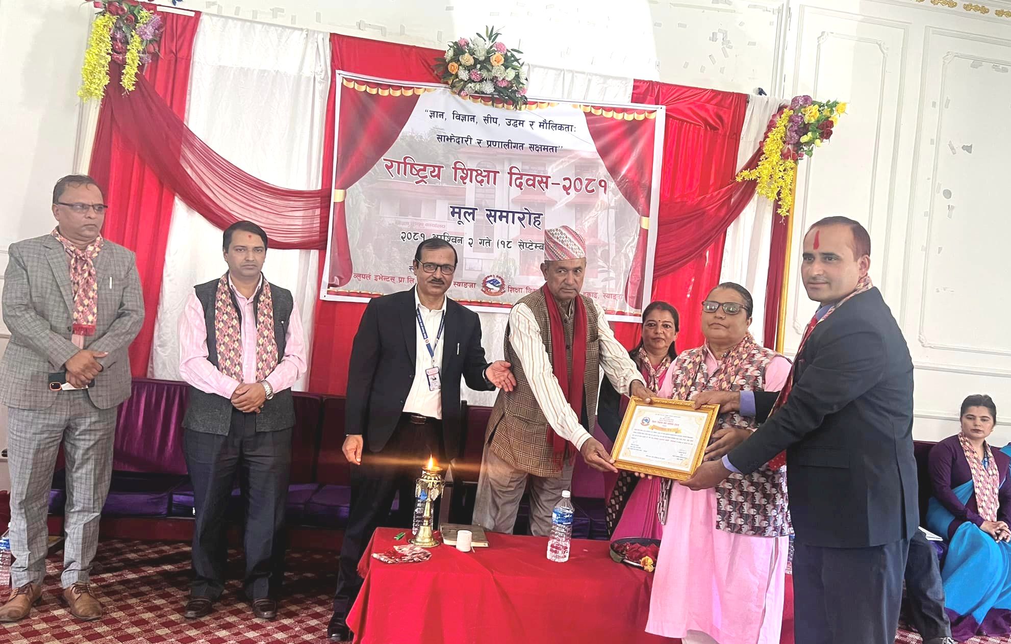 नवौं संविधान तथा ४५ औं राष्ट्रिय शिक्षा दिवसको अवसरमा विभिन्न विद्यालय एवम् शिक्षकहरुलाई बुधबार सम्मान गरिएको हो ।