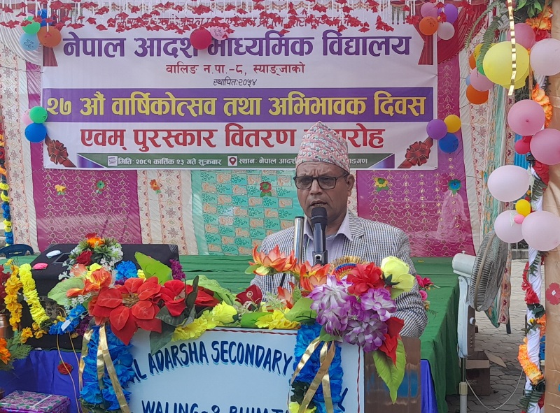 २०५४ सालमा स्थापना भएको र वालिङ ८ भीमटारीमा रहेको विद्यालयले आज शुक्रबार २७ औं वार्षिकोत्सव तथा अभिभावक दिवस एवम् पुरस्कार वितरण समारोहको आयोजनासहित सम्पन्न गरेको हो ।