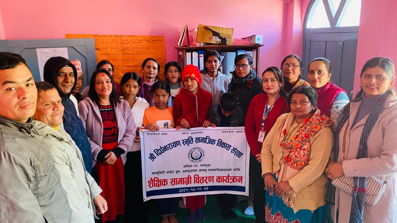 दीर्घनारायण स्मृति सामाजिक विकास संस्था वालिङ नगरपालिका–१० ले ग्रुपको सम्पर्कमा रहेका बिपन्न बालबालिकाहरुलाई ४० हजार आठ सय बराबरको शैक्षिक सामग्री, पोशाक तथा नगद वितरण