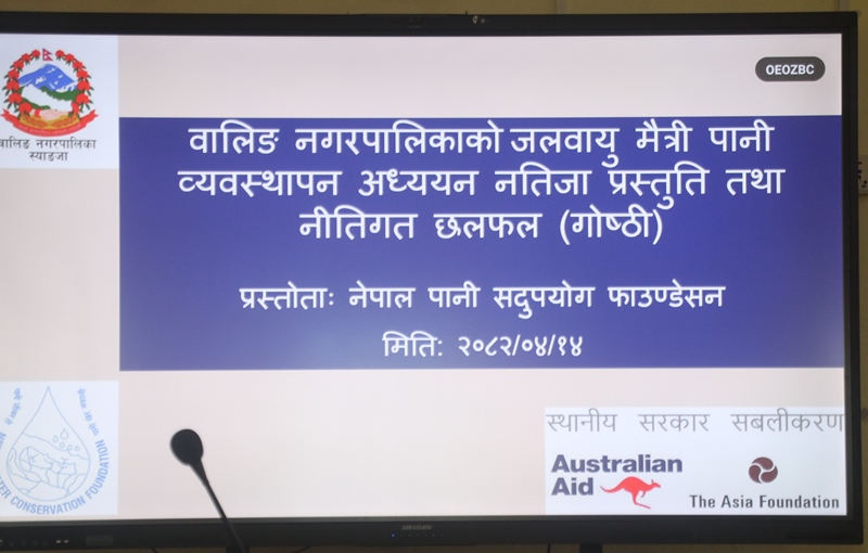 वालिङ नगरपालिकाको सहकार्य र नेपाल पानी सदुपयोग फाउण्डेशनको आयोजनामा वालिङ नगरपालिकाको पानी व्यवस्थापन अध्ययन नतिजा प्रस्तुति तथा नीतिगत गोष्ठी