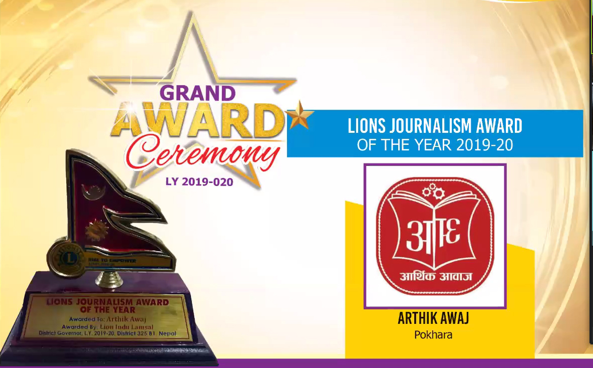 आर्थिक आवाज मिडियाले ‘लायन्स जर्नालिजम अवार्ड अफ दि इयर २०१९÷२०’ प्राप्त गरेको छ ।
